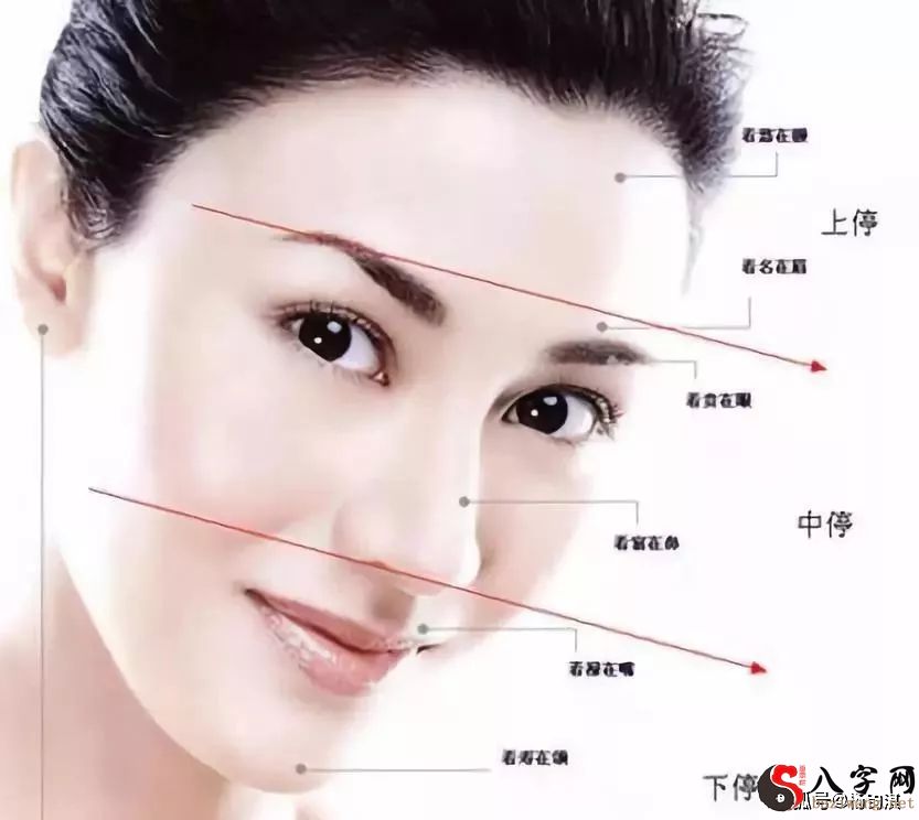 面相学师门多种多样,都各有秘籍,但三停之说,是国内全部面相学共产有的基本。要搞清楚一生的运势怎样,需先把脸庞横隔成三个部份,从三个部份中,可看得出初期,中老年,晚年时期的运程。解读如下所示: