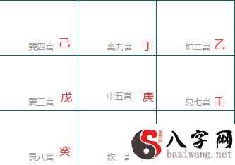 依照宫位的数据顺排排:丙,乙,戊,己,庚,辛,壬,癸,丁。这儿的规律看出来较为凌乱了。可是如果我们以所处局数为代表(便是以三宫为代表)再去排序,那麼得到的排序便是:戊,己,庚,辛,壬,癸,丁,丙,乙。是否这样的规律便是很显然了。大家先记好这一“三奇”“六仪”的排序方法。