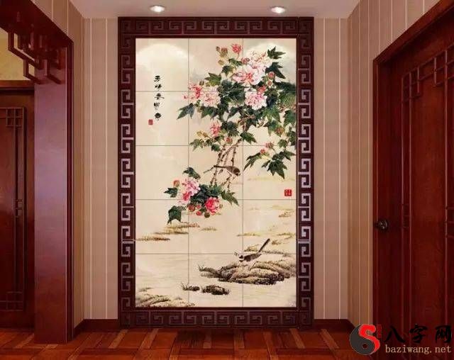玄关装饰在家居家具风水中尤为重要。能够选择一幅有风水实际意义的国画作品,例如九鱼图,牡丹画,笑迎天地的石榴画,风水实际意义的山水画等。