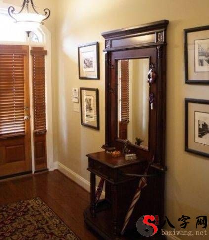 但浴室镜子由于有反射面作用,不可以立即对大门口,会使从大门口进去吉气财运反射面出来。入户玄关顶部切勿贴眼镜片,会让人觉得上重下轻,颠倒乾坤。