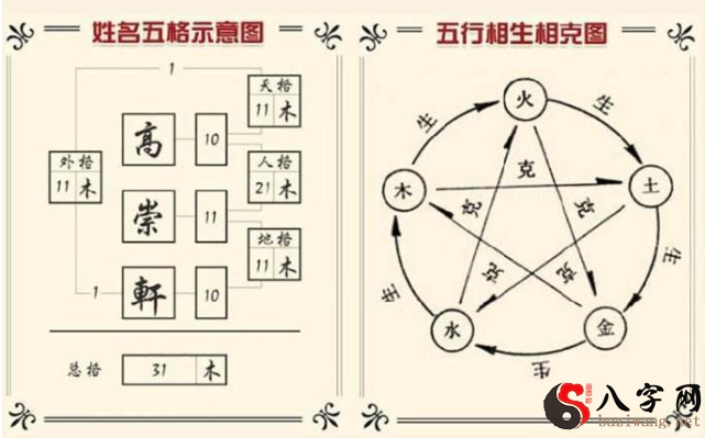 这就是中国古时候姓名学的最主要的三才五格的一个组成的那么一个方式。
